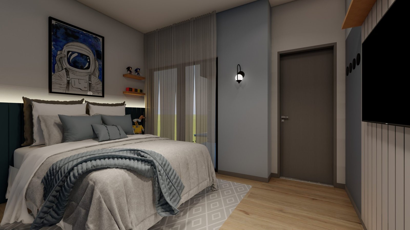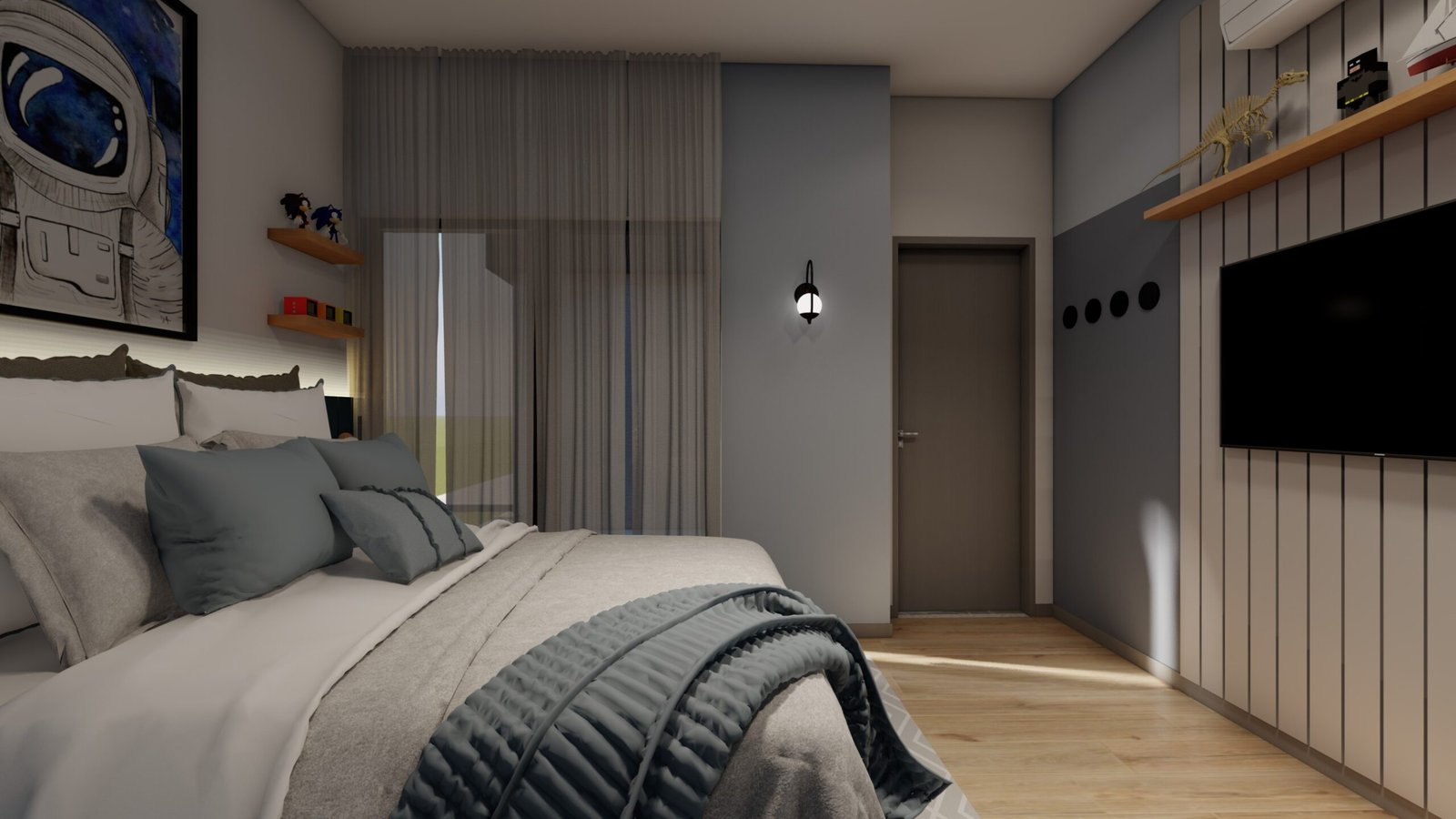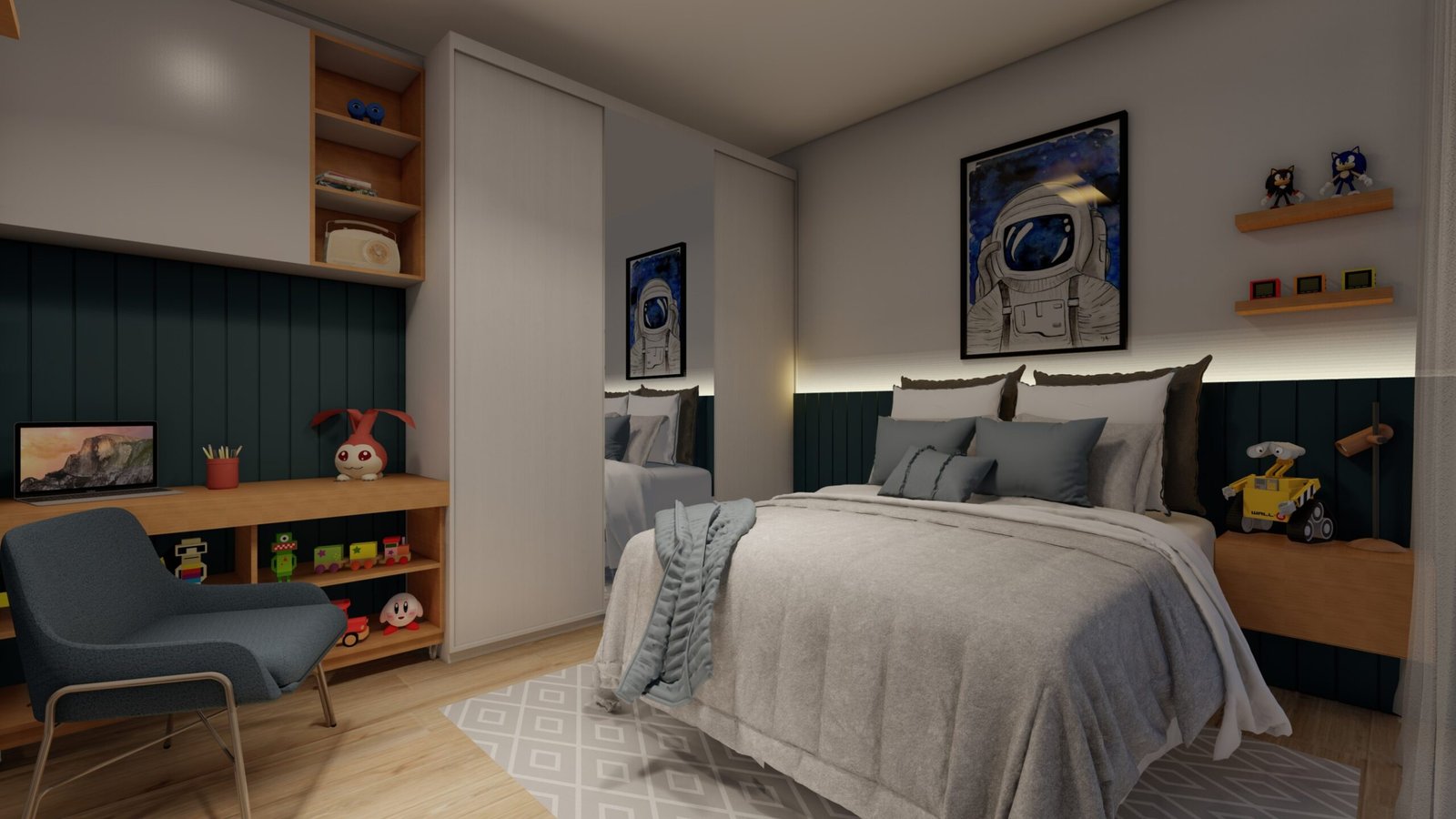Quarto Infantil Astronauta Prepare-se para decolar em uma aventura espacial no quarto do seu pequeno astronauta! 🚀✨ Com tons de azul, este espaço é perfeito para estimular a imaginação e criar memórias incrÃveis. Deixe seu pequeno explorador sonhar alto e alcançar as estrelas! 🌟